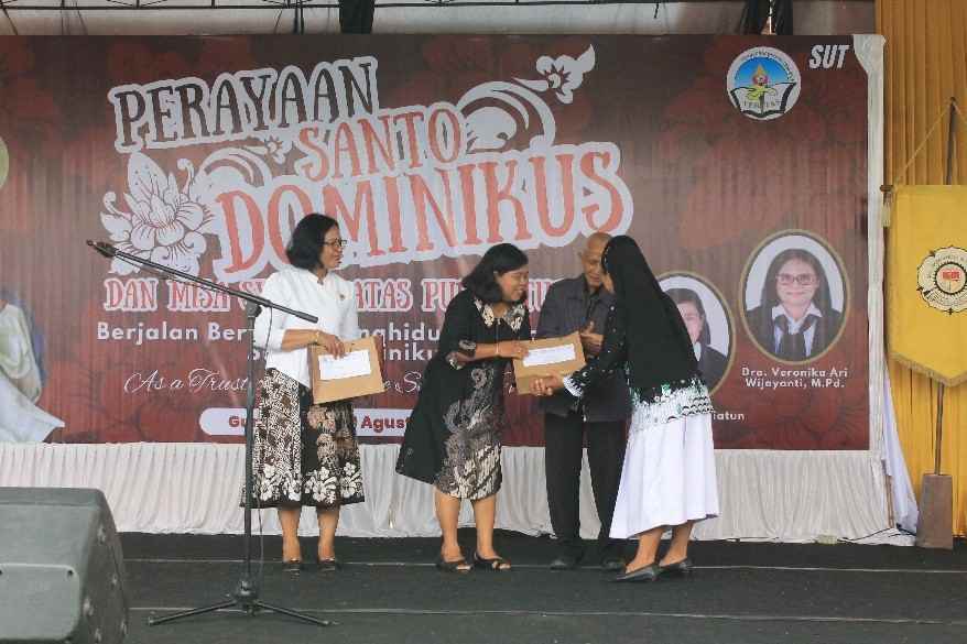 Acara dilanjutkan dengan pemberian penghargaan bagi guru dan karyawan berprestasi di berbagai bidang oleh Sr. M. Rosiana, OP. sebagai sebuah bentuk apresiasi dan motivasi yang mengingatkan bahwa setiap dedikasi memiliki nilai besar bagi perkembangan sekolah dan yayasan.